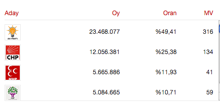 AKP (Արդարություն և զարգացում կուսակցություն)՝ 49.48