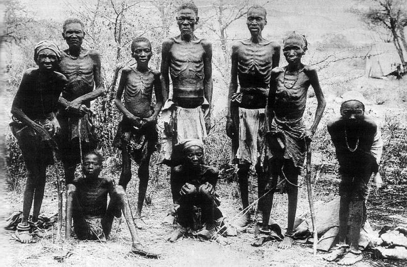 «Գերմանական կայսրութիւնը 1844-էն այս կողմ գաղութներ ունեցած է Ափրիկէի մէջ։ Անոնց կարեւորագոյներն են Քամերուն, Թոկօ, Գերմանական Արեւելեան Ափրիկէ եւ Գերմանական Հարաւ-Արեւմտեան Ափրիկէ։ Այդ տարածքի այսօրուան անունը Նամիպիա է։ 1904-ին տեղացի Հերերօ եւ ապա Նամա ժողովուրդները հետզհետէ ծաւալող զրկանքներու բերմամբ դիմադրութեան դիմեցին Գերմանիոյ դէմ։ Գերմանացիները անխուսափելի մատնութենէն փրկուեցան շնորհիւ վատահամբաւ զօրավարի՝ Լոթհար Ֆոն Թրոթհայի ղեկավարած օժանդակ զօրքերուն։ Զօրավարը կը հաւատար, թէ պատմութիւնը սպիտակամորթ եւ սեւամորթ ցեղերու միջեւ պատերազմի մը միջոցաւ պիտի գրուի։ Այս հասկացողութեան համապատասխան վերաբերումով բնաջնջեց տեղացի ժողովուրդը։ Ուոթրպուրկի բախումներէն ետք պարտուած տեղացի ժողովուրդը աքսորեց դէպի Օմահեքէի անապատը։ Այստեղ արգիլեց անոց ջրհորներու կամ այլ ջուրի աղբիւրներու հասնիլը։ Երկու ամսուայ այս ռազմավարութեան հետեւանքով Հերերօներու 70 տոկոսը, իսկ Նամաներու 50 տոկոսը սովամահ եղան»։