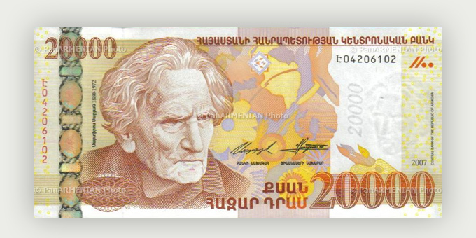Ու գրավաճառ Տիգրանին կու տամ հայկական դրամներու ամենէն դեղինը, որուն դիմերեսը Մարտիրոս Սարեանի դիմանկարն է, իսկ դարձերեսը՝ այդ հայ մեծանուն նկարիչի «Հայաստան» բնանկարէն դրուագ մը։