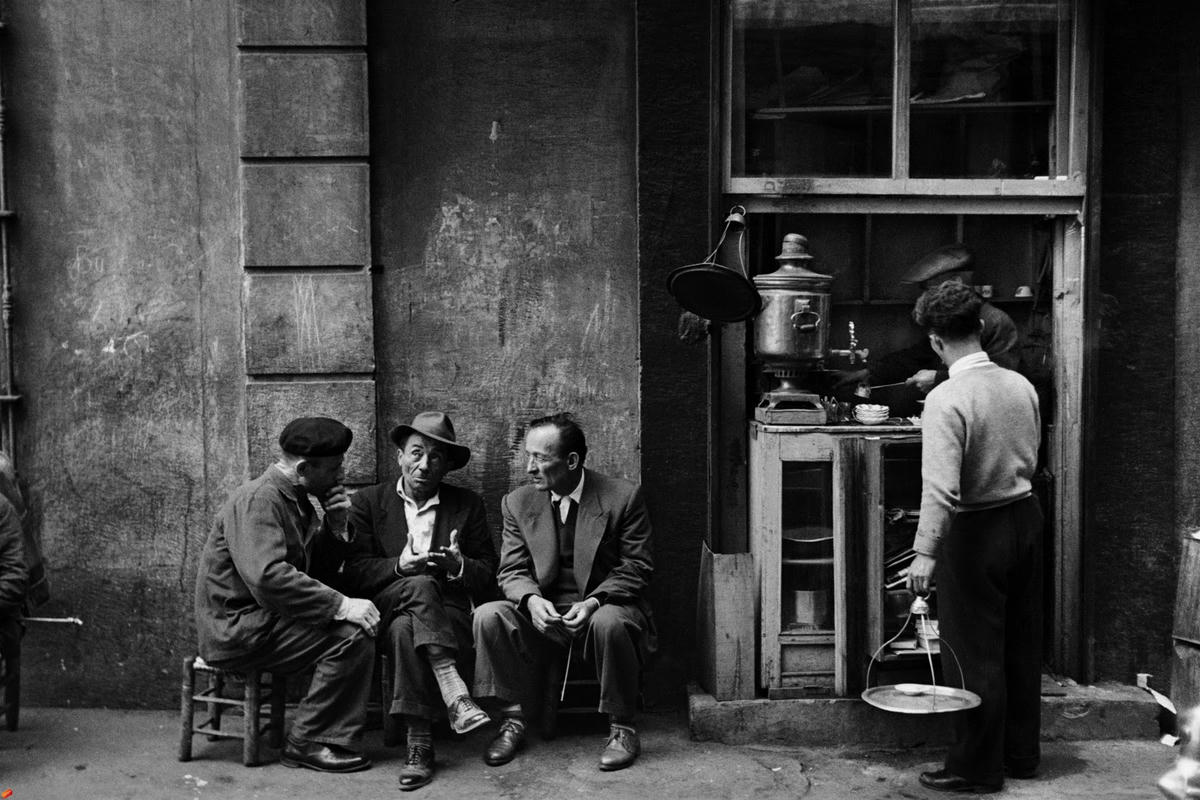 Երեք յաճախորդներ, քաղաքի մէջ տիրող ցուրտին հանդերձ, նստած են խանութի առջեւ, աթոռակներու վրայ։ Անոնք այժմէական լուրերու մասին կը խօսին անկասկած։ Մկրտիչը իր «դէզկեահ»ին առջեւ զբաղած կ՚երեւի։ Կրակին վրայ կը տեսնեմ անոր յաւիտենական պղնձեայ ինքնաեռը։ Այն տպաւորութիւնը ունիմ, թէ այդ ինքնաեռը մարդկութեան արշալոյսէն ի վեր թէյ եփած է։