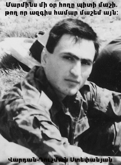 «Ես սգաւոր մայր չեմ, ես Դուշման Վարդանի մայրն եմ, ես հերոսի մայր եմ, որի միակ պակասը օտարի ոտքերի տակ տնքացող հողն էր»։ Սա Դուշման Վարդան Ստեփանեանի (1966-1992) մօր խօսքերն են։ Հերոսը յանգչում է Եռաբլուրում։ Ինչպէս միւս բոլոր մեր հերոսները։ Եւ որքան հպարտ չլինեն մայրերը, նրանց միակ ճամբան է՝ քայլել եւ փարուել զոհուած որդու շիրիմին։ Նրանք հոգով եւ մտքով միշտ իրենց որդիների հետ են։ Տօնում են նրանց տարեդարձներն ու տարելիցները։ Հաշւում նրանց չապրած, ընդհատուած տարիները։ Ո՛չ մի մխիթարութիւն նրանք չունեն։ Ո՛չ մի սփոփանք։ Բայց արի՛ ու տես, որ այդ որդեկորոյս մայրերին երա՛նի են տալիս մի ուրիշ մայրեր։ Անյայտ կորածների մայրերը։ Ո՞րն է նրանց ապրելու բանաձեւը։ Կայ այս անուան ներքոյ մի մատենաշար «Ապրելու բանաձեւ», որի 10 եւ 11-րդ հատորի շնորհանդէսին «Նոյեան տապան» գրախանութում Ապրիլի 9-ին ես ներկայ էի գտնուել։ Հեղինակը ձայնասփիւռի լրագրող Գոհար Մարտիկեանն էր, որը կորցրել էր իր որդուն՝ Աշոտ Չախոյեանին, դեռեւս առաջին արցախեան պատերազմում 1994-ի Յունուարի 31-ին։ Իր ապրելու բանաձեւը Գոհար Մարտիկեանը գտել էր այս գրքերը գրելու մէջ եւ արդէն 1200 կենսագրեր է ներկայացրել հանրութեանը։ Զոհուած ազատամարտիկների կեանքերն էր հաւաքում, գրելով այնպէս, որ լաց չառաջանայ, թէեւ հրապարակախօս Յովհաննէս Պապիկեանն ասաց, որ չի կարող լսել Գոհար Մարտիկեանի հաղորդաշարը (մատենաշարից զատ Գոհար Մարտիկեանն ունի հաղորդաշար ձայնասփիւռով), քանզի Թումանեանի «Գիքորի» պէս գիտի, որ հերոսը պիտի մեռնի… Հետաքրքիր ելոյթ ունեցաւ Գարեգին Գէորգեանը՝ ժուրնալիստիկայի ֆակուլտետից.