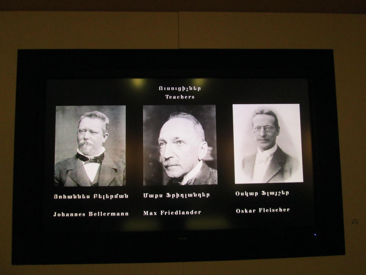 Այս անգամ ես ընտրեցի Կոմիտասի թանգարան-ինստիտուտը։ Արթուր Մեսչեանի նախագծած շէնքը բաղկացած է համերգասրահից եւ բուն թանգարանից, որը ներառում է ութ սրահ։ Թանգարան գալուց ես մտածում էի, որ կը տեսնեմ Կոմիտասի ընկերների եւ ժամանակակիցների լուսանկարները եւ այսպիսով կզգամ իր ժամանակի մթնոլորտը, կը շնչեմ Կոմիտասի շնչած օդը։ Սակայն տեսածներս գերազանցեցին իմ բոլոր ակնկալութիւններս։ Ես տեսայ նրա հովանաւորներին, ուսուցիչներին, աշակերտներին։ Հիացայ, որ ընկերները հանդէս էին գալիս ոգեշնչողների անուան տակ եւ…ինչպիսի՜ դէմքեր։ Այսօր չկան նման դէմքեր։ Չեն կարող լինել։