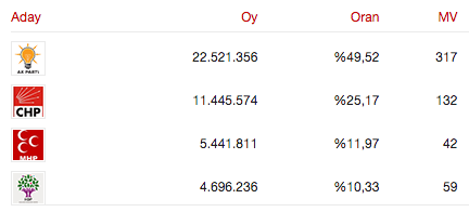 MP numbers according to Anadolu Agency: