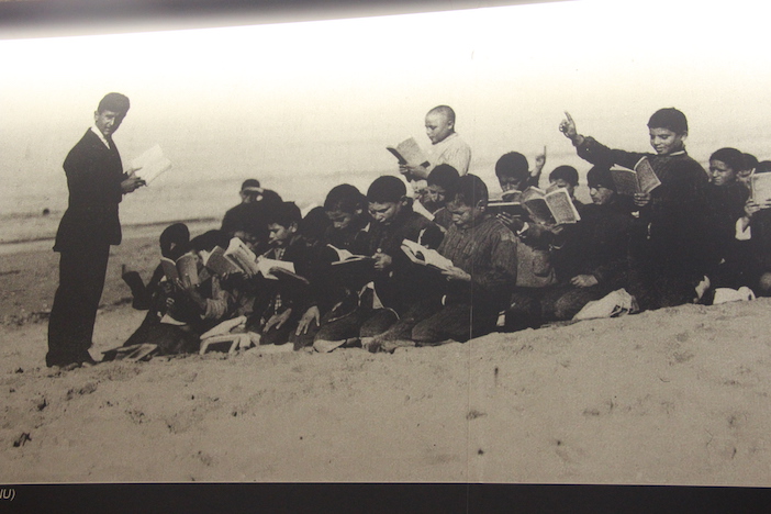 There is a black-and-white picture that keeps haunting my thoughts since I visited the “Bird’s Nest” orphanage-museum early this summer. It is taken probably in the 1920’s on the sands of Antelias beach – north of Beirut - not far from where the Catholicosate of the Great House of Cilicia is located nowadays. There is an adult man standing on the sand, a book in his hands, looking towards the camera. There are some twenty or so boys sitting on the sand, concentrated looking at the books in front of them. Only one is looking towards the camera. There are two boys raising their hands: the face of one of them is visible. He has a pale smile on his face as he looks to his book and waits permission to answer.