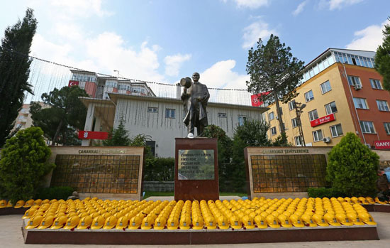 Manisa'nın Soma felaketinden yaklaşık bir ay sonra, Meclis Araştırma Komisyonu üyeleri, Soma Kaymakamlığı'nı ziyaret etti. Soma Kaymakamlığı önündeki Atatürk Anıtı önünde 301 madencinin adının yazılı bulunduğu üzerinde ölen madencilerin isimlerinin yazdığı baretler bulunuyor.