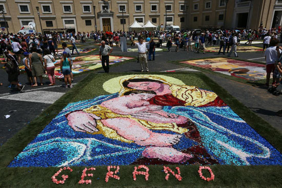 Aziz Petrus ve Paulus günü olması sebebiyle Vatikan'ın Aziz Petrus meydanı girişine, 5 bin çiçek kullanılarak Hristiyan aleminin önemli kişilerinin silüetlerinin yansıtıldığı sanatsal halılar kondu. Çiçekten yapılan tasarım harikası halılar, Papa Franciscus'un Angelus Duası'nı dinlemeye gelen inananların ilgisini çekti.
