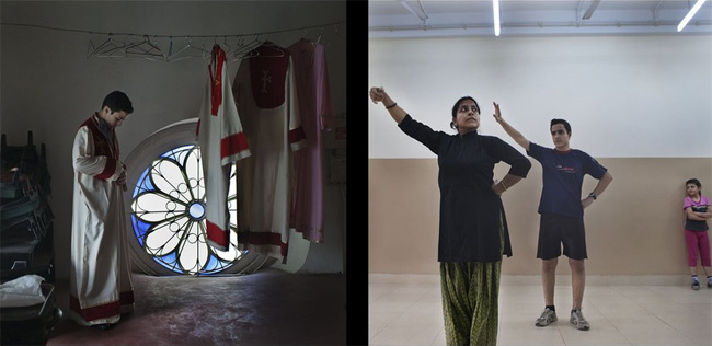 Kalküta’daki Ermeni Koleji ve Hayırsever Akademisi’nin birçok öğrencisi gibi, Ejmin de İranlı. Orada okumayı tercih etmesinin nedeni, okulun ücretsiz ve iyi bir eğitim veriyor olması. Solda, kilise korosu kıyafetini [şabik] giyiyor. Sağda, bir Hint dansı öğreniyor.