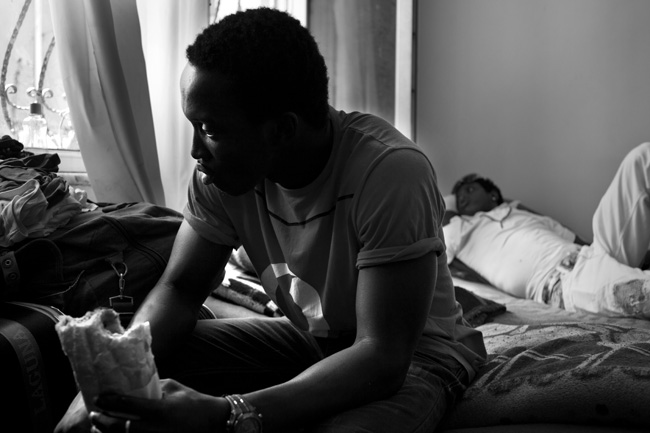 Tekstil, konfeksiyon ve ayakkabı atölyelerinde mal taşıyarak yaşamaya çalışan 22 yaşındaki göçmen, ülkesinde iktisat okurken üniversiteyi bırakıp kaçmak zorunda kalmış. Yemek yaptıkları tüpün bitmiş; bu yüzden canı sıkkın ve konuşmak istemiyor. Sadece, “En çok ülkemde bıraktığım sevgilimi özlüyorum” diyor.