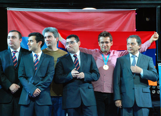 ALKIŞLAR ERMENİSTAN SATRANÇ MİLLİ TAKIMI'NA Tweet 29.11.2014 FOTO GALERİ 4 / 19 ÖNCEKİ SONRAKİ Alkışlar Ermenistan Satranç Milli Takımı'na Ekibinde dünyanın ikinci en iyi satranç oyuncusu Levon Aronyan'ın bulunduğu Ermenistan'ın ardından Rusya ikinci, geçtiğimiz yılın ikincisi Ukrayna ise üçüncülük kürsüsüne çıktı. Kategoriler Foto Galeri Haber