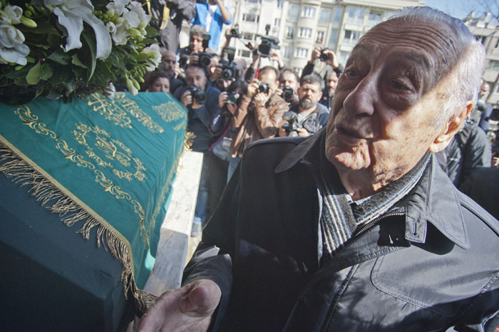 YAŞAR KEMAL ÖLÜR MÜ? Tweet 02.03.2015 FOTO GALERİ 4 / 10 ÖNCEKİ SONRAKİ Yaşar Kemal ölür mü? Yaşar Kemal, binlerce kişinin katıldığı cenaze töreniyle son yolculuğuna uğurlandı. Ellerinde yazarın kitaplarını taşıyan sevenleri Teşvikiye Camii'ne akın etti. Fotoğraf: Berge Arabian Kategoriler Foto Galeri Yaşam