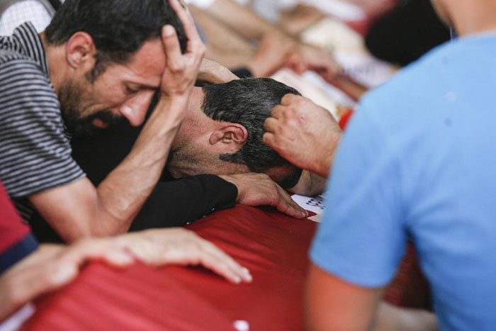 Şanlıurfa'nın Suruç ilçesinde meydana gelen terör saldırısında hayatını kaybeden ve Gaziantep Adli Tıp Kurumundaki işlemleri tamamlanan cenazeler, defin işlemi için hazırlanıyor. Kurum morguna gelen cenaze yakınları musallaya alınan cenazeler başında ağıtlar yaktı