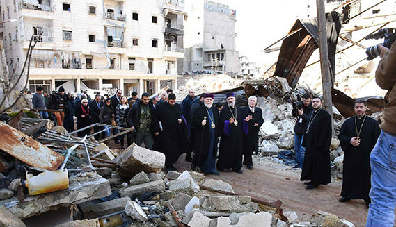 HALEP'TE 6 YIL SONRA KİLİSE ÇANLARI İLK DEFA ÇALDI Tweet 10.01.2017 FOTO GALERİ 4 / 6 ÖNCEKİ SONRAKİ Halep'te 6 yıl sonra kilise çanları ilk defa çaldı Surp Dzınunt ayinin ardından, savaşta zarar görmüş kurumları da ziyaret eden Aram I, defalarca bombalanan Ermeni Apostolik Karasnits Mangants Kilisesi’ne de ziyarette bulundu. Kategoriler Foto Galeri Video Galeri