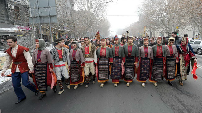 YEREVAN’DA PUN PAREGENTAN Tweet 02.03.2017 FOTO GALERİ 5 / 6 ÖNCEKİ SONRAKİ Yerevan’da Pun Paregentan Kiliseden çıkan genç, yaşlı Yerevanlılar, Mesrob Maşdots Caddesi’ni boydan boya kat edip Opera Meydanı’nda dans ederek Pun Paregentan eğlencesini başlattı. Kategoriler Foto Galeri