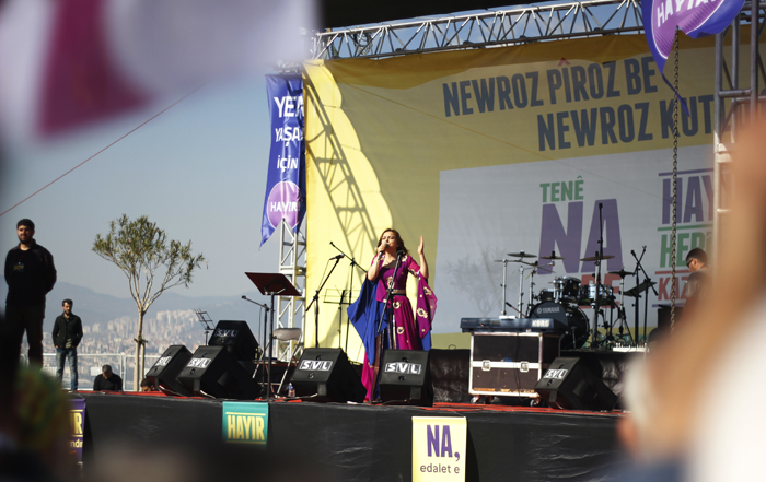 Gülistan Kılıç Koçyiğit: “Bugün bu meydanları dolduran onurlu insanlar yarına güzel ve onurlu bir gelecek bırakacaklar. İki yıldır bize işkence edenler taş üstüne taş bırakmayanlar tarihin çöp sepetine gidecekler. Cizre’de şehit düşen ve bizimle gurur duyun diyen Mehmet Tunçlar için haykırıyoruz: Newroz piroz be!”