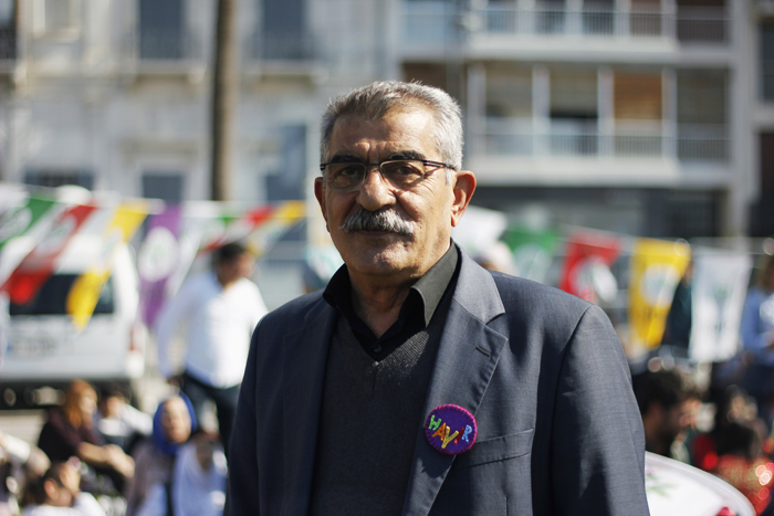 GÜNDOĞDU MEYDANI'NDAN NEWROZ MANZARALARI Tweet 22.03.2017 FOTO GALERİ 9 / 12 ÖNCEKİ SONRAKİ Gündoğdu Meydanı'ndan Newroz manzaraları Kemal Bey yakasındaki “Hayır” amblemini fotoğraf çekilmeden önce düzeltiyor: “Bu yılki Newroz bu kadar baskıdan ve zulümden kimsenin korkmadığını gösteriyor, bu sayede kazanacağımıza inanıyorum”. Kategoriler Foto Galeri Haber