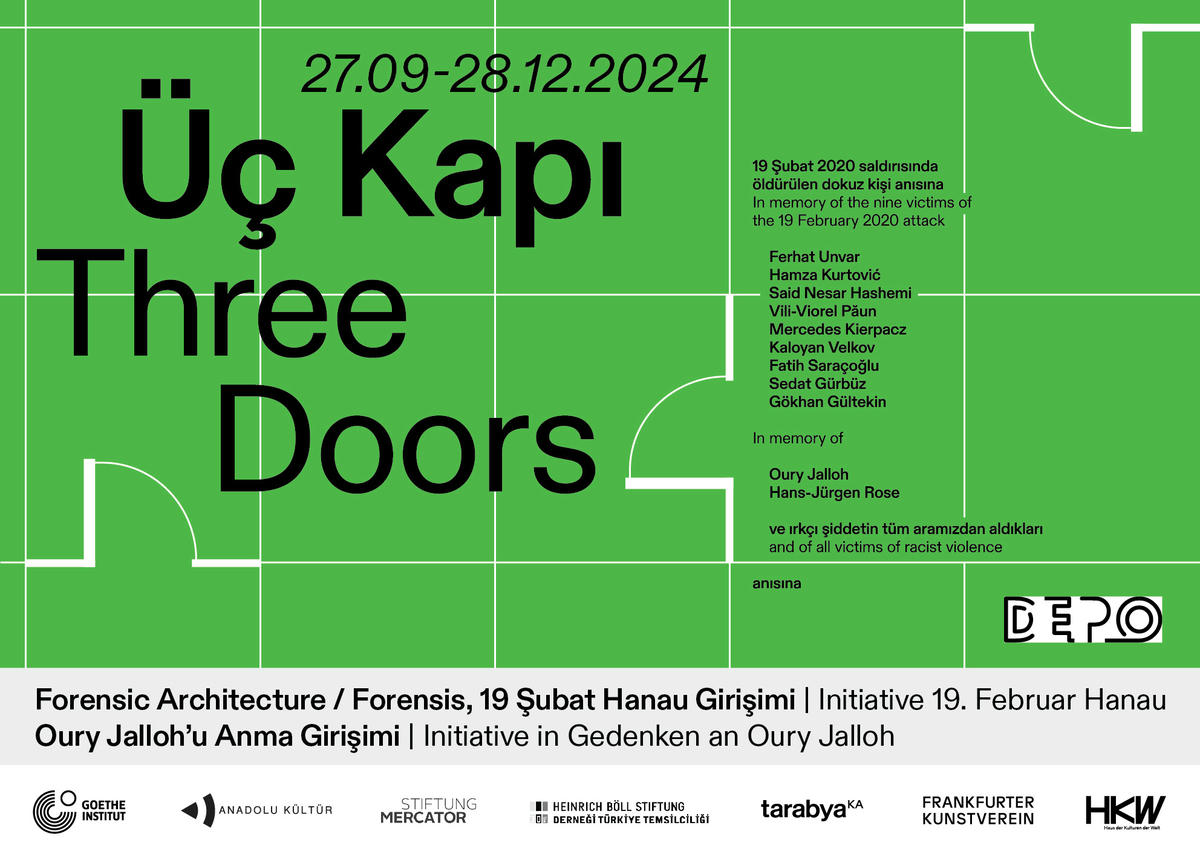 "Üç Kapı" başlıklı ödüllü sergi, Almanya’da yaşanan iki ırkçı şiddet vakası üzerinden, yapısal ırkçılığı ve polisin ihmalini inceliyor. Sergi, 2022’de Frankfurter Kunstverein’daki ilk sunumundan bu yana Almanya’da çeşitli şehirleri dolaştı ve şimdi ilk kez ülke dışına taşınıyor.