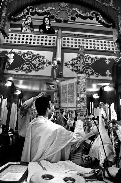 Bir tanesi dışında tüm fotoğraflar İstanbul’dan. Bu tek fotoğraf ise Hatay’da çekilmiş bir Bar Mitzvah fotoğrafı, çünkü merasim yapıldığında oğlanın babası Hatay’da yaşıyordu. Tüm aile ve dostları Hatay’a gitti. Merasimleri Hatay Sinagogu’nda yapıldı, ben de onlarla gidip fotoğraf çektim. Fotoğraflardan da görüldüğü gibi Tora, Hatay’da İstanbul’dan daha farklı. Kitapta ayrıca Avustralyalı arkadaşım Josef Polaros’un çektiği bir cenaze fotoğrafı da var.
