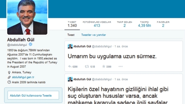 Erdoğan’ın 20 Mart’ta Bursa’daki konuşmasındaysa hedef ‘twitter’ oldu: "Twitter mivitır hepsinin kökünü kazıyacağız". Bu sözden bir gün sonra twitter'a erişim, Telekomünikasyon İletişim Başkanlığı’nca engellendi. Başbakan Erdoğan kararı desteklerken, Cumhurbaşkanı Abdullah Gül twitter üzerinden “Sosyal medya platformlarının tamamen kapatılması tasvip edilemez” mesajı verdi. 2 Nisan’da Anayasa Mahkemesi, yapılan bireysel başvurular sonucu, “ifade özgürlüğünün ihlali” kararı verdi. Bir gün sonra Bilgi Teknolojileri ve İletişim Kurumu twitter erişimine yönelik engellemenin kaldırdı. Kullanıcılar, 13 gün sonra twitter hesaplarına girmeye başladı.