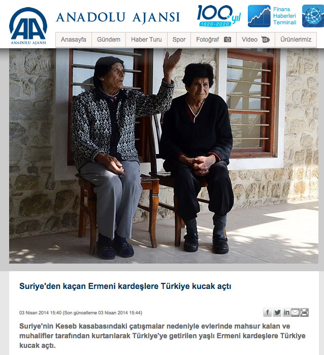 Ankara’nın gündeminde IŞİD henüz sadece Süleyman Şah Karakolu için bir tehlike olarak görülüp bunun için “stratejiler” konuşulurken, Suriye’de katliamlar devam ediyordu. 23 Mart’ta Türkiye’nin hava sahasına yaklaşan Suriye uçağının düşürüldüğü yer olan tarihi Ermeni kasabası Kesab, El Kaide bağlantılı grupların saldırısına uğradı. Kesablı yaşlı Ermeniler, muhalifler tarafından Türkiye’ye getirilirken şov malzemesi yapıldı. Gazete sütunları “Türkiye Ermenilere kucak açtı” minvalinde haberlerle doldu.