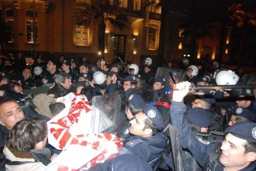 Polis ise bulvarın Kızılay girişini kapattı. Gösterici ve polislerin karşı karşıya gelmesi üzerine bir emniyet müdürü mikrofonu alarak göstericileri ikaz etti. Eylemin yasa dışı olduğunu vurgulayan polis, “Burada başkalarının haklarını gasp ediyorsunuz, hak arama böyle olmaz. Ankara’nın en işlek caddelerinden birini trafiğe kapatanız. Lütfen bu caddeyi trafiğe açın. Aksi takdirde zor kullanılarak müdahale yapılacak.” diyerek son ikazı yaptı.
