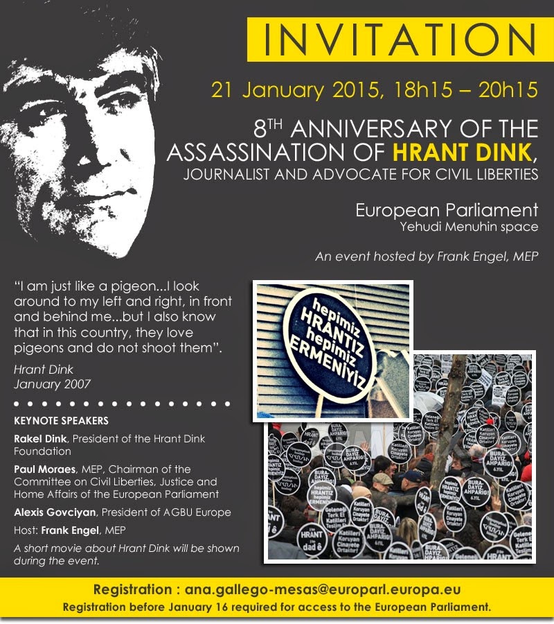 Rakel Dink, Paul Moraes ve Alexis Gavciyan’ın konuşacağı anma etkinliği Avrupa Parlamentosu’nun katkılarıyla düzenleniyor.