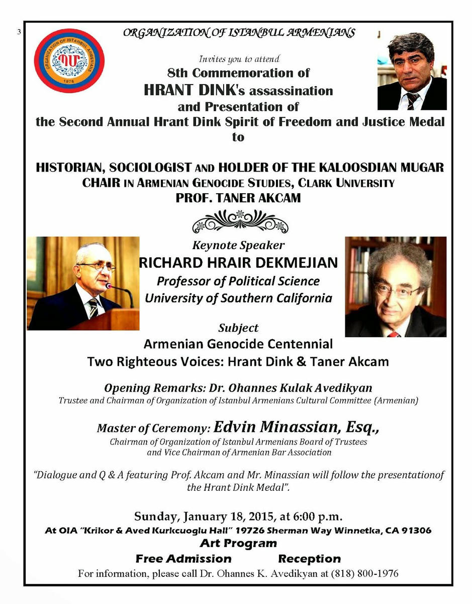 Richard Hrair Dekmejian ve Taner Akçam’ın konuşma yapacağı anma etkinliğini İstanbul Ermenileri Derneği düzenliyor.