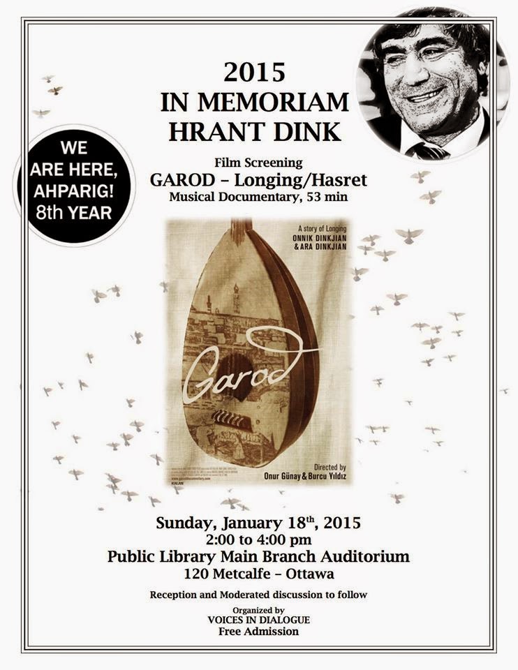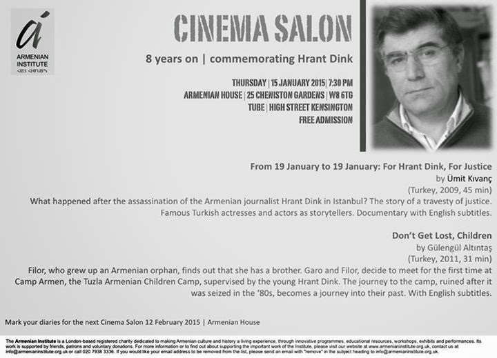 Ermeni Enstitüsü’nün düzenlediği Hrant Dink’i anma etkinliğinde Ümit Kıvanç’ın ’19 Ocak’tan 19 Ocak’a: Hrant için Adalet İçin’ ve Gülengül Altıntaş’ın ‘Kaybolmayın Çocuklar’ filmleri gösterilecek.