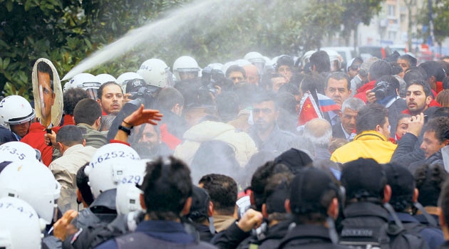 İstanbul Kongre Merkezi'nde zirve devam ederken, dışarıda toplanan gruplar da protesto eylemleri yaptı. Muhalifler, Esed aleyhine sloganlar atarken, 300 kadar rejim yanlısı da toplantıyı protesto etti. Olay çıkmaması için tedbir alan polis, Esed yanlılarına biber gazıyla müdahale etti. Müdahale üzerine yürüyüşe geçen protestocularla, Suriyeli muhalifler karşı karşıya gelince kısa süreli gerginlik yaşandı. İki grubun birbirine saldırısını polis engelledi. Kısa süreli gerginliğin ardından muhalifler uzaklaştırıldı. Esed yanlıları ise otobüslere bindirildi. Yaşanan arbedede yaralanan ve biber gazından etkilenenler hastaneye kaldırıldı.