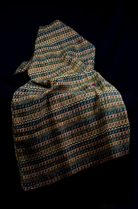 Adıyamanlı Manuşyan ailesine ait bebek battaniyesi. Haziran 1915’te köyden Der Zor’a sürgün edilen 83 kişilik aileden sadece üç kişi hayatta kalmayı başarmış. Tehcirden birkaç gün önce, bir yaşındaki Hıripsime’nin annesi ve babası onu bir battaniyeye sarıp, dostları olan, Alevi bir aileye emanet etmiş. Hıripsime’yi bu aile büyütmüş. Sürgüne gönderilenlerden hayatta kalabilen üç kişi ise, Suriye’de 10 yıl boyunca mülteci olarak yaşadıktan sonra 1924’te köye dönmüş. Türkler evlerine, Süryaniler ise topraklarına el koymuş olsa da, 11 yaşındaki Hıripsime’ye geri almayı başarabilmişler. Battaniye bugün Hıripsime’nin Yerevan’da yaşayan torunu Sarkis Atsapnian tarafından korunmaktadır.