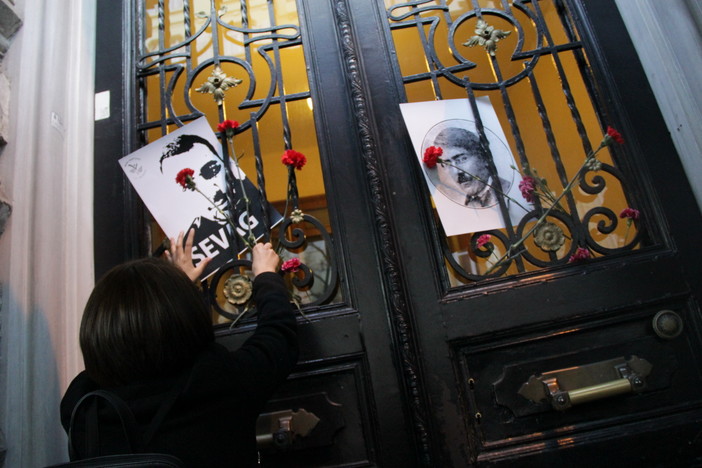 Grup basın açıklamasından sonra Krikor Zohrab'ın evinin önüne karanfil bıraktı.