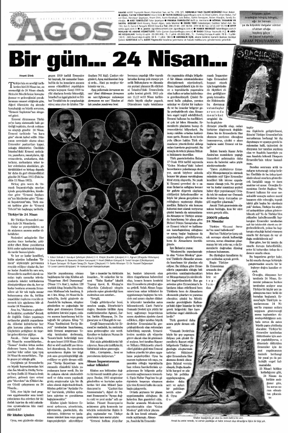 Agos’un kurucusu ve genel yayın yönetmeni Hrant Dink’in, on bir yıl önce, 24 Nisan Ermeni Soykırımı anması vesilesiyle, özel bir yazı kaleme almıştı. Agos’un ilgili sayısı, 24 Nisan’ı birlikte anma çağrısı yapan bu yazı gerekçe gösterilerek toplatılmıştı. Aradan geçen zaman içinde nelerin değişmiş, nelerin değişmemiş olduğunu görmek ve bu yazıyı hakkı olan geniş kitlelerle bir kez daha buluşturmak üzere, yeniden yayımlıyoruz.