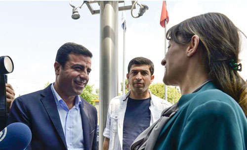 Demirtaş, eşi Başak Demirtaş ile Atatürk Havalimanı'ndan Ankara'ya hareketinden önce VIP Salonu'nda gazetecilerin gündeme ilişkin sorularını cevapladı.