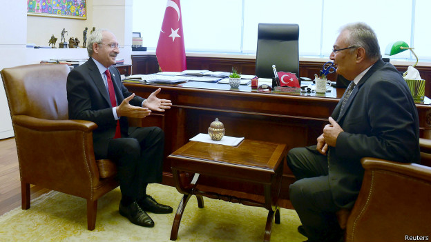 Bugün sabah saatlerinde Cumhurbaşkanı Erdoğan’la görüşen Deniz Baykal, toplantı sonrası gazetecilere yaptığı açıklamada, görüşmeyi Erdoğan’ın istediğini söylemişti. Geçici meclis başkanı sıfatıyla, Erdoğan'ın daveti üzerine görüşmeye gittiğini söyleyen Baykal, koalisyon görüşmeleriyle ilgili olarak “Cumhurbaşkanının her türlü koalisyon çözümüne açık anlayış içinde olduğunu gördüm. Muhalefetin kendi arasında koalisyon oluşturmasına itirazı yok. Koalisyon görüşmesi yapma konumum yok, olamaz. Ben bir milletvekiliyim. Partiler var, genel başkanları var. Onlar bu konuda çeşitli hazırlıklar yapıyorlardır. Benim o çalışmalarla ilgili somut girişimim olamaz" ifadelerini kullandı.
