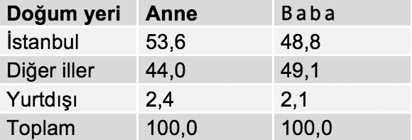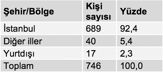 Ankete katılanların yüzde 92,4’ü İstanbul’da yaşarken, Türkiye’deki diğer illerde yaşayanların oranı yüzde 5,4’te kalıyor. Bu istatistikler, katılımcıların ebeveynleriyle karşılaştırıldığından ise ortaya çarpıcı bir sonuç çıkıyor. Katılımcıların annelerinin yüzde 44’ü Türkiye’nin başka bir şehrinde doğmuşken, babalar için bu oran yüzde 49,1.