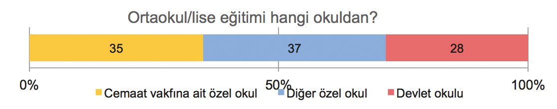 Katılımcıların yüzde 35’i azınlık okullarından mezun olurken, yüzde 37’si özel okullarda, yüzde 28’i ise devlet okullarında eğitim almışlar