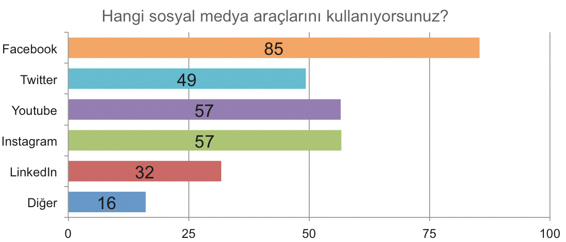 Katılımcıların yüzde 85’i sosyal medya araçlarından Facebook’u kullanırken, Instagram kullanımı da Türkiye ortalamasının (% 12) çok üzerinde. Sosyal medya araçlarını kadınlar daha çok kullanırken, Instagram hariç sosyal medya araçlarını en yoğun kullanan grup Museviler olarak öne çıkıyor.