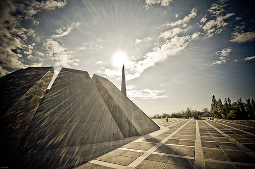 Anıtın ilk bölümüne ulaşmıştı. Duvarlarda çeşitli şehir adları okunuyordu. Başta yazı- lanların yanına yenileri eklenmişti sonradan. Büyük bir acıyı küçültenlere inat, onlar da kendilerince ve yanlış olarak artırmışlardı bu isimleri. Oysa bu yaptıkları, yaşanmış olanı yüceltmek değil ufaltmaktı.
