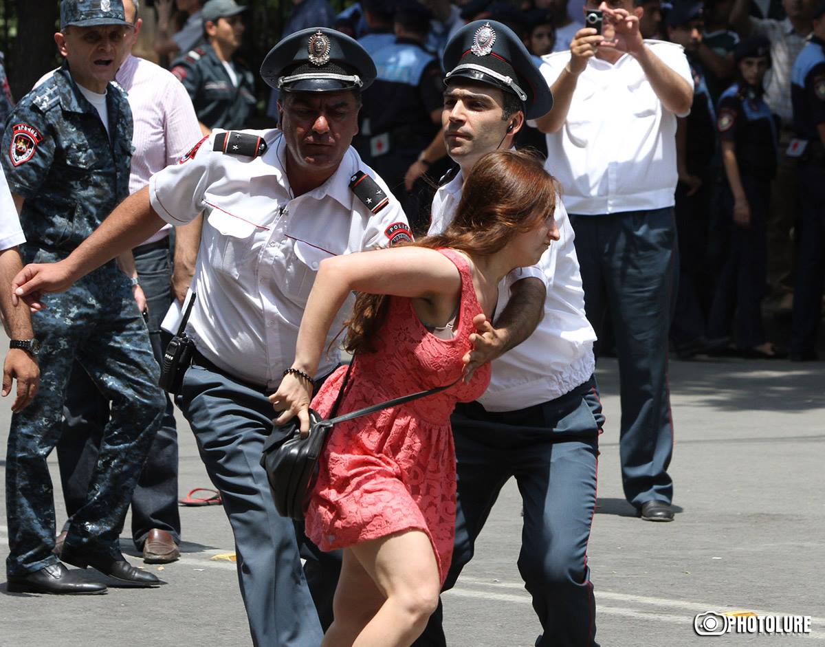 (YEREVAN) Protestocular uzun süre bulvarı terk etmek istemeyince polis ile aralarında arbede yaşandı, ayaklarından ve kollarından birkaç polis tarafından sürüklenerek götürülen protestoculardan 45’i gözaltına alındı. 2 haftadır göstericilerin polise karşı barikat olarak kullandıkları çöp konteynerleri, polis eliyle şehrin temizliğinden sorumlu özel “Saniteké firmasına iade edildi.