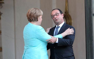 Paris’te acil bir görüşme yapan Fransa Cumhurbaşkanı François Hollande ile Almanya Şansölyesi Angela Merkel, Yunan halkının kararına saygı duyduklarını ve müzakere kapısının açık olduğunu açıkladı.