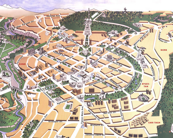 Zafer Parkı ve Ermenistan Ana Heykeli: Sovyetler Birliği’nin dağılmasının ardından Lenin heykeli kaldırılıp onun yerine Sanatçı Rafael İsraelyan tarafından tasarlanan, Ermenistan’ı sembolize eden ve yüksekliği 50 metreyi bulan ‘Ermenistan Ana Heykeli’ yerleştirilmiş. Heykelin bulunduğu Zafer Parkı, turistlerin rağbet ettiği yerler arasında.