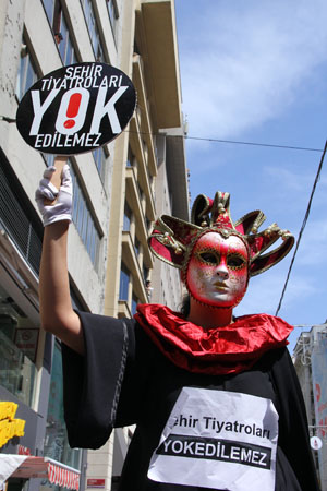 Tiyatromuzu kendimiz yönetmek istiyoruz. Tiyatroyu tiyatrocular yönetir. Şehrin tiyatrosu yok edilemez. Yeni yasa istiyoruz.