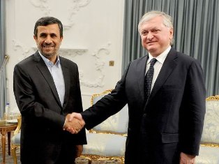 Ermenistanlı bakan, zirve turuna Cumhurbaşkanı Mahmud Ahmedinecad'la devam etti. Ticari ilişkilerin damgasını vurduğu görüşmede Ahmedinecad 'Serbest ticaret başlasın' dedi. Görüşmede ayrıca Aras Nehri üzerindeki hidroelektirik santral inşaatları petrol boru hattı ve İran-Ermenistan demiryolu inşaatının gündeme geldiği açıklandı. İranlı yetkililer iki ülke arasındaki ticari ilşki hacminin 2010'da 270 milyon dolarken bu yıl 300 milyon dolara çıktığını kaydetti. Dün ziyaretinin tamamlayan Nalbandyan ayrılca İran Meclisi