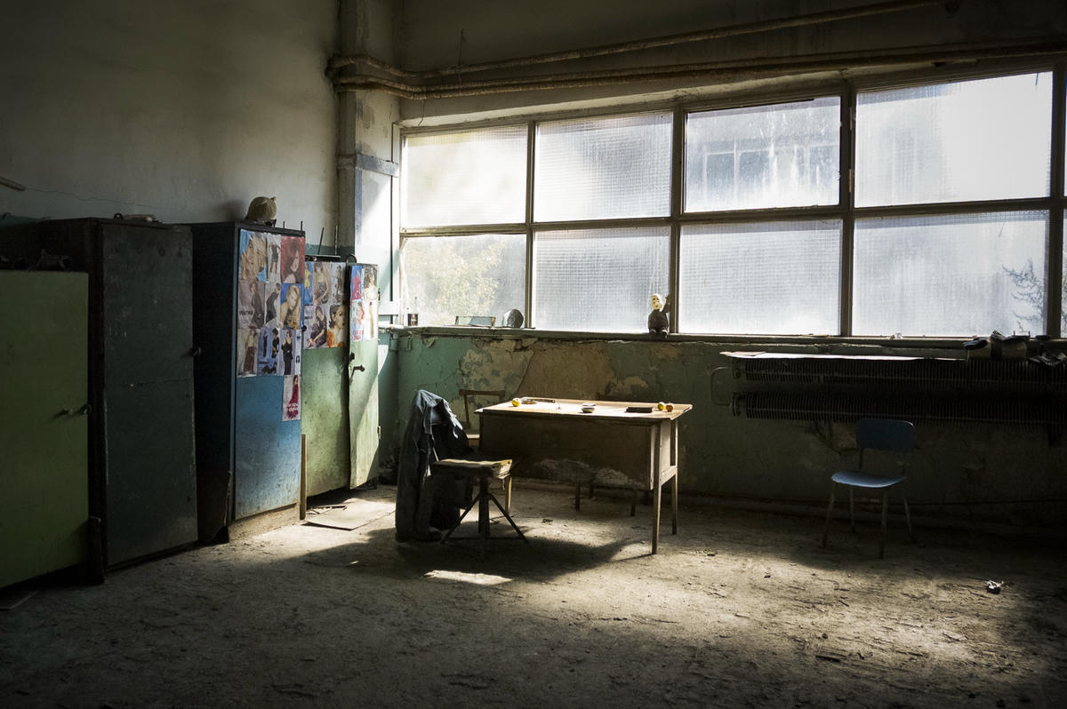 Ermenistan’da artık kullanılmayan fabrikaların bulunduğu bölgeyi, altı yılı aşkın bir süre boyunca defalarca ziyaret ettim. Bu mekânlara her girdiğimde, hep durağanlık fikrini, natürmort kompozisyonları temel alan fotoğraflar çektim. Fotoğrafların birinde gördüğünüz Lenin portresi artık kullanılmayan bir endüstriyel kompleks içindeki kütüphanede duruyordu. Burası, Sovyetler döneminde teknolojik gelişmeler üzerinde çalışan mühendislerin varlığını bizlere hatırlatıyor. Onlardan geriye ise bu şaşırtıcı manzara kalıyor: Bir Lenin port-resi, önünde baş aşağı duran bir buket ve hepsinin üzerinde durduğu masadan oluşan durağan bir natürmort. Mekândaki kapalı duran pencere, üzeri kapatılmış umutları ve tüm geçmişi önümüze seriyor. Kilitli kapılar ardında duran, Sovyet döneminden kalma renklerin, canlı kırmızının, mavi ve yeşilin soluklaştığını görüyoruz.