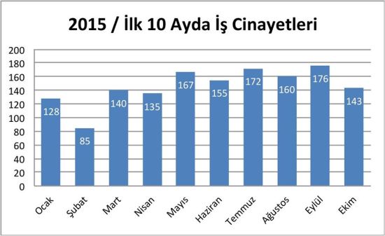 İşçi Sağlığı ve İş Güvenliği Meclisi raporuna göre, ekim ayında en az 143 işçi hayatını kaybetti. 2015 yılının ilk on ayında iş cinayetlerinde en az 1461 işçi hayatını kaybetmiş oldu.