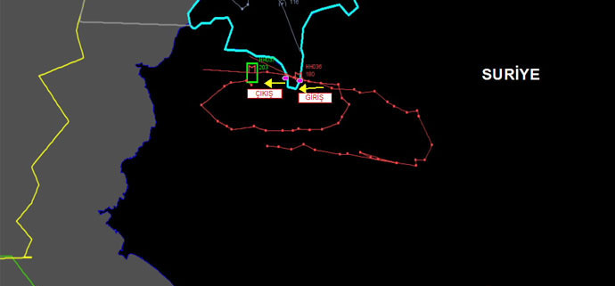 * Savaş uçağı Türk sınırına 4 kilometre uzaklıktaydı.