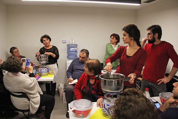 Diğer atölye çalışması kapsamında ise yine panel konuşmacılarından Silva Özyerli eşliğinde likör yapımı öğrenildi. Katılımcılar Özyerli’nin kendi derlemesi olan kahve likörü tarifini uygulayarak, bir yandan bu leziz içkinin yapımını öğrenme, diğer yandan da bir dönem Amed’inin mahalle kültürüne ve günlük yaşamına dair hikâyeler dinleme imkânı buldu.