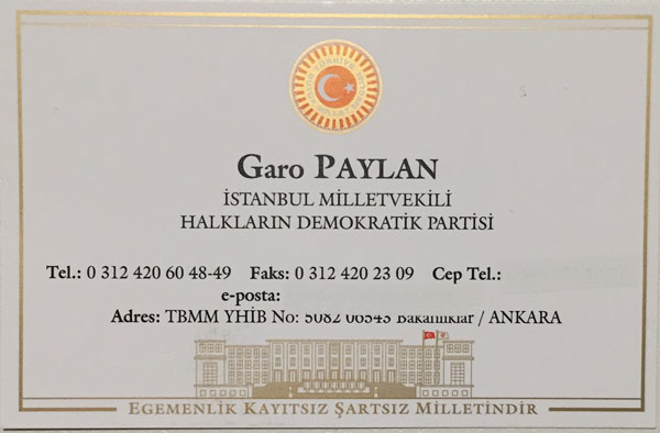 21 Şubat Dünya anadil gününde, HDP İstanbul milletvekili Garo Paylan, TBMM tarafından Türkçe ve Ermenice olarak basılmış kartvizit fotoğrafını sosyal medyada paylaştı.