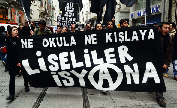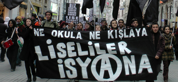 'Askere gitme kardeş kanı dökme', 'İtaatsizlik özgürlüktür', 'Ne okula ne kışlaya liseliler isyana' pankartlarının taşındığı eylemde 'Barış için vicdani ret', 'Reddet, diren, hayır de askere gitme', 'Hiç kimse asker doğmaz', 'Kadınların vicdanı reddediyor savaşı' sloganları atıldı, dövizleri taşındı.