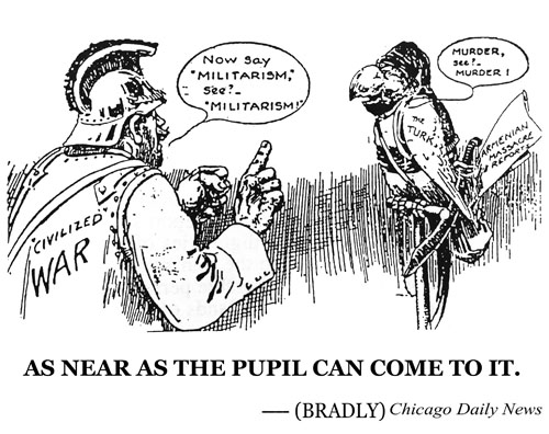Bu sayfada söz konusu basından yaptığımız küçük bir derlemeyi dikkatinize sunuyoruz. Punch (İngiltere), Simplicissium (Almanya), Chicago Daily News (ABD), Khatapala (Gürcistan) gazetelerinin sayfalarında; Oskar Shmerling, Thomas Theodore Heine, Luther Daniels Bradley, Oliver Herford, Bernard Partridge, Alexander Saroukhan gibi tanınmış ve okurun güvenini kazanmış çizerlerin belge niteliğindeki çizimleri bulunuyor.