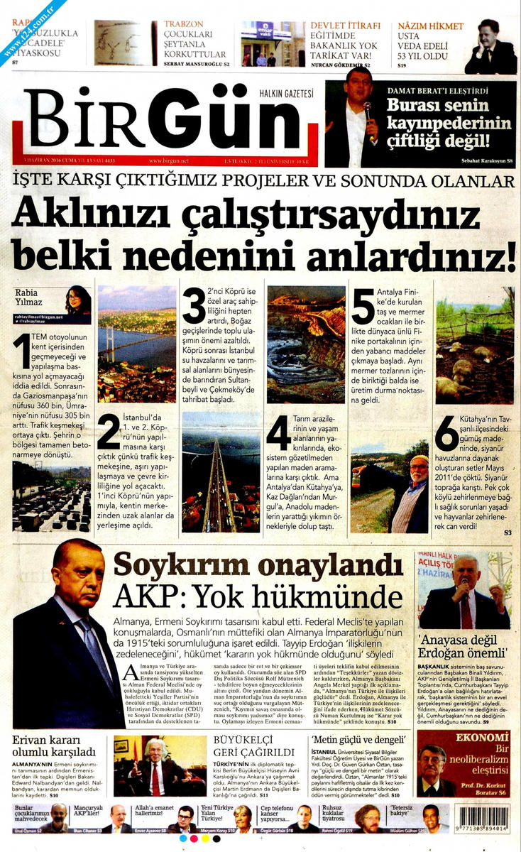 Birgün Gazetesi, haberi ‘Soykırım onaylandı, AKP: Yok hükmünde’ manşetiyle verdi.